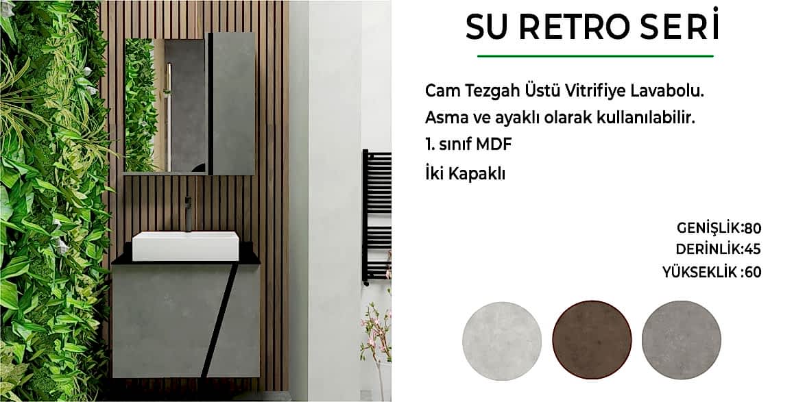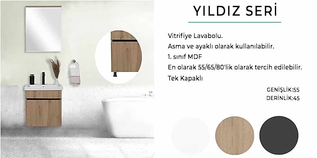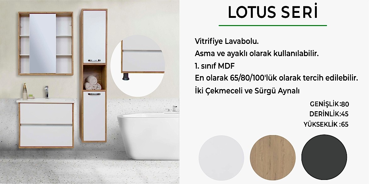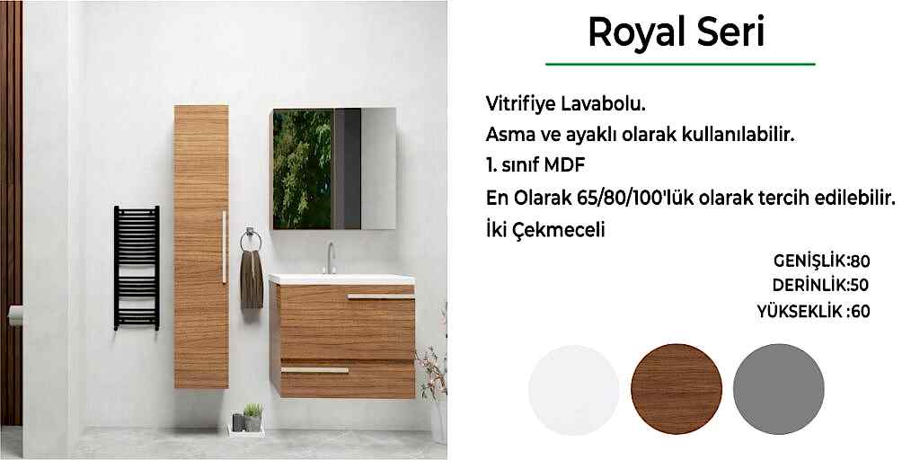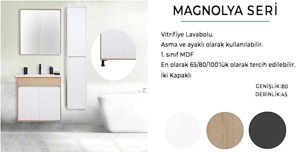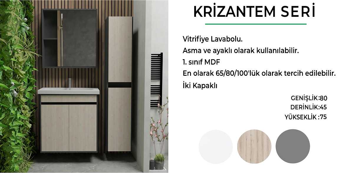 Firmamızda üretilen Banyo Dolapları E1 normundaki 1. Kalite MDF’ den üretilmektedir. Banyo Dolaplarımızda kullanılan tüm aksesuarlar paslanmaz olup standart veya özel üretim şeklinde yapılabilmektedir. Aynı şekilde minifix sistemli veya vidalı olacak şekilde üretim yapılabilmektedir. Kullanılan kenar bantları 1mm olup PVC den mamuldür. Üretimde kullanılan tüm makinalarımız yeni olup en iyi markalardan oluşmaktadır. Sitemizde gördüğünüz standart Banyo Dolaplarımız dışında özel olarak tasarlanmış dolaplarımızda bulunmaktadır. Dolaplarımızda kullandığımız vitrifiye lavabolar 1.Kalitedir. Banyo alt dolaplarımız gizli kulplu veya metal kulplu ve çekmeceli olarak üretilmektedir. Üst dolaplarımızda kullandığımız aynalar 1.sınıf olup tamamıyla bizotelidir.